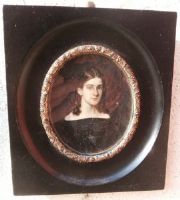 dipinto ad olio su avoriolina, raffigurante: fanciulla con boccoli