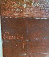 dipinto ad olio su tela raffigurante:"Paesaggio con figure", firmato in basso a sinistra Thornby. Pittore inglese