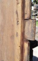 Puerta de madera de nogal de dos hojas, con copete moldeado.