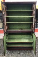 Englische zweiteilige Anrichte aus Mahagoniholz, Unterteil mit Scheinschubladen, mit herausnehmbaren Innenböden, Oberteil mit zwei Türen und verschiebbaren Innenböden je nach benötigter Höhe.