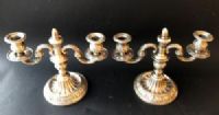 coppia di candelieri argentati, finemente cesellati, su base tonda.