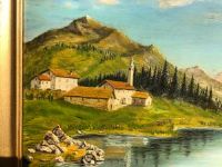 paesaggio fluviale ad olio su compensato, firmato: Segna 1951,