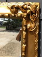 Espelho em madeira esculpida e dourada, com cantos moldados