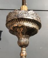 Lámpara de cobre plateado, repujado; en buen estado de conservación. Finales del siglo XIX - primera mitad del siglo XX.