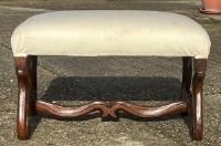 Bellissimo e perfetto grande panca sgabello in legno di noce, di forma sagomata, originale del '600, in perfetto stato di conservazione.