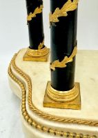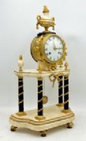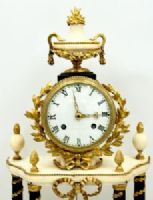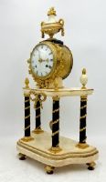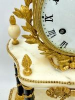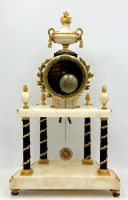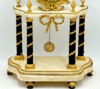 Espetacular e perfeito grande orgulho em pêndulo de época Luís XVI original parisiense, de grande efeito e fascínio pela sua imponência. Com bronzes dourados ao mercúrio finamente trabalhados e cinzelados. Mármores branco de Carrara e colunas em mármore preto enriquecidas por bronzes em lâmina espiral.