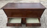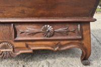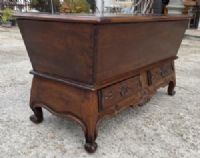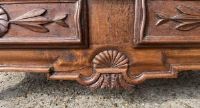 madia in legno di noce, con due cassetti sul fronte, ricche sculture ai cassetti e alla base,  gambe di forma sagomata;