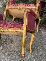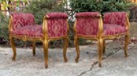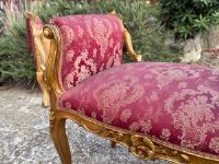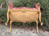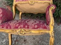 En parfait état de conservation, rembourrage en écru d'origine en parfait état avec ressorts. Le tissu est de couleur rouge avec décoration dorée... le tissu effet soie, a quelques usures, mais dans l'ensemble il est très beau et fascinant.
