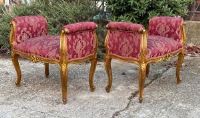 Sublime paire de bancs en bois doré dans le noble et très élégant style Louis XV.