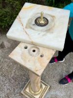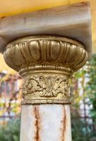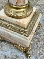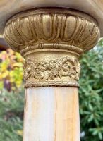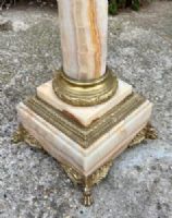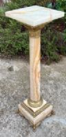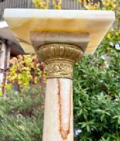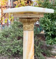 Colonna in onice (la roccia pregiata più nobile usata nell’ antichità) con bronzi dorati e cesellati. Il piano è rotante su perno e cuscino in bronzo.
