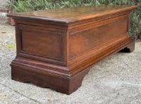 Baú de nogueira perfeito, com dimensões ideais para qualquer ambiente da sua casa. De época antiga e qualidade de construção verdadeiramente sublime. Em pátina encerada brilhante, perfeito e intocado.