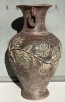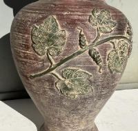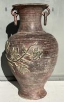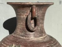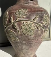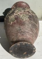 anfora in terraccotta con figure di vite in rilievo, anelli alle anse, integra e perfetta.