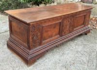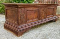 Bellissima e sanissima cassapanca in noce massello d’alta epoca del periodo pieno ‘600 ancora di gusto rinascimentale.