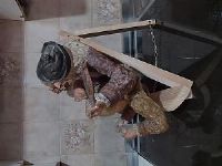 Escultura en terracota policromada que representa la alegoría del canto y la música. cm.45x36h