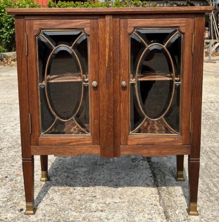 Cabinet-sideboard-display cabinet, in oak wood, with shaped crystals. First half of the 20th century. cm. 75 x 36 x 82h Our price euro 400,00